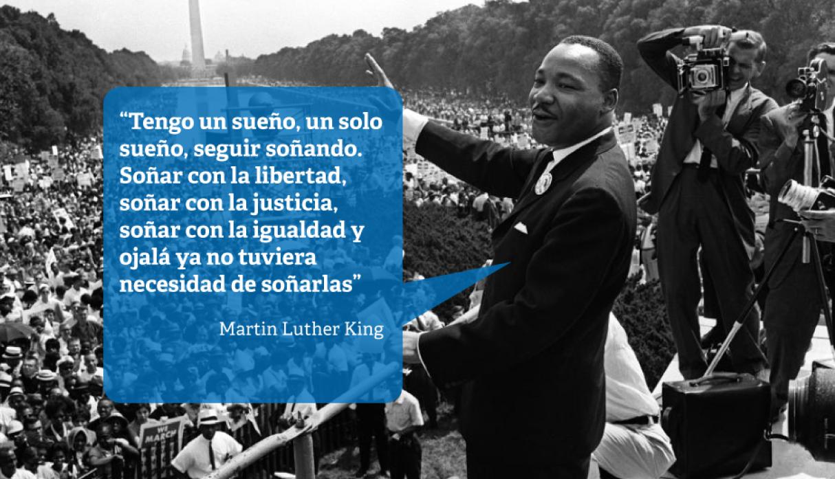 Martin Luther King, Jr. fue un pastor estadounidense de la Iglesia bautista que desarrolló una labor crucial en Estados Unidos al frente del movimiento por los derechos civiles para los afroestadounidenses y que, además, participó como activista en numerosas protestas contra la Guerra de Vietnam y la pobreza en general.